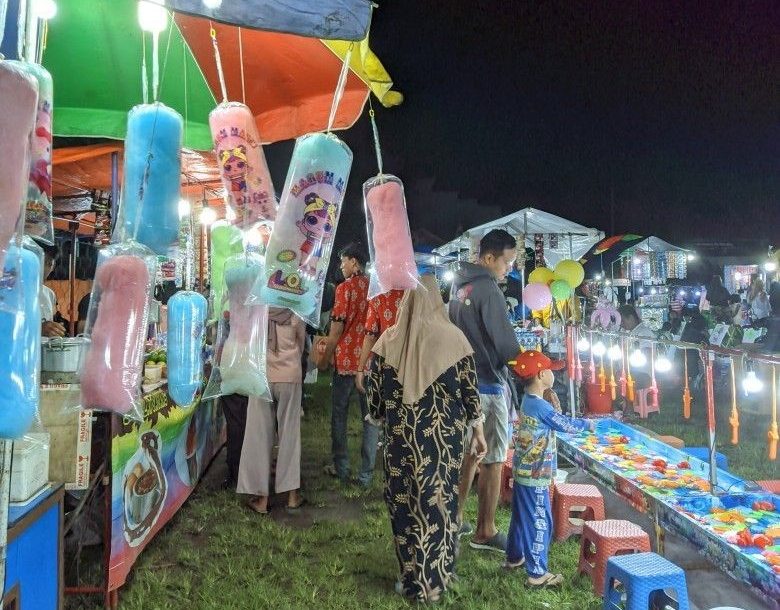 “Awalnya, saya melihat banyak anak yang membutuhkan tempat bermain di pasar malam, dan saya pikir ini adalah peluang yang bagus. Kemudian saya mulai menambahkan jajanan kekinian seperti mochi dan sosis, yang ternyata banyak disukai pengunjung,” jelas Hermawati.