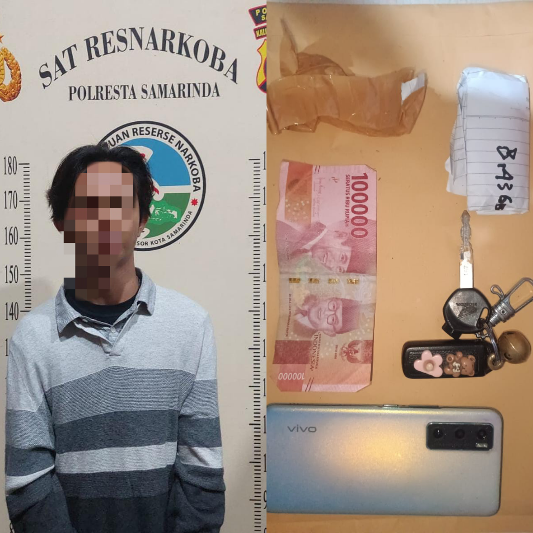 Lokasi tersebut diketahui sering dijadikan tempat transaksi narkotika. Sekitar pukul 00.10 WITA, petugas mencurigai seorang laki-laki yang sedang duduk di atas sepeda motor. Selanjutnya Petugas segera melakukan penggeledahan terhadap laki-laki yang diketahui bernama inisial RF (19), warga Jl. Kenangan IX, Sungai Pinang, Samarinda.