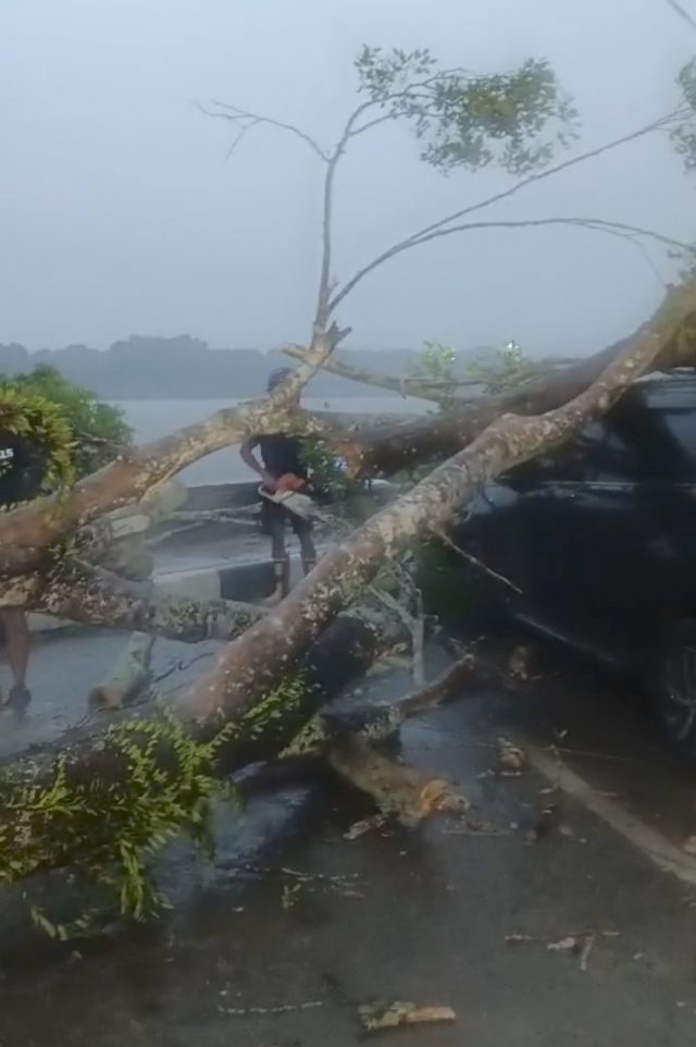 Peristiwa tersebut terjadi saat hujan deras disertai angin kencang yang melanda kawasan tersebut. Pohon yang tumbang mengenai dua mobil yang terparkir di pinggir jalan, merusak bagian atap dan kaca mobil. Warga setempat segera melaporkan kejadian ini ke pihak berwenang, dan dalam waktu kurang dari setengah jam, tim dari Dinas Pemadam Kebakaran langsung bergerak menuju lokasi untuk menangani masalah tersebut.