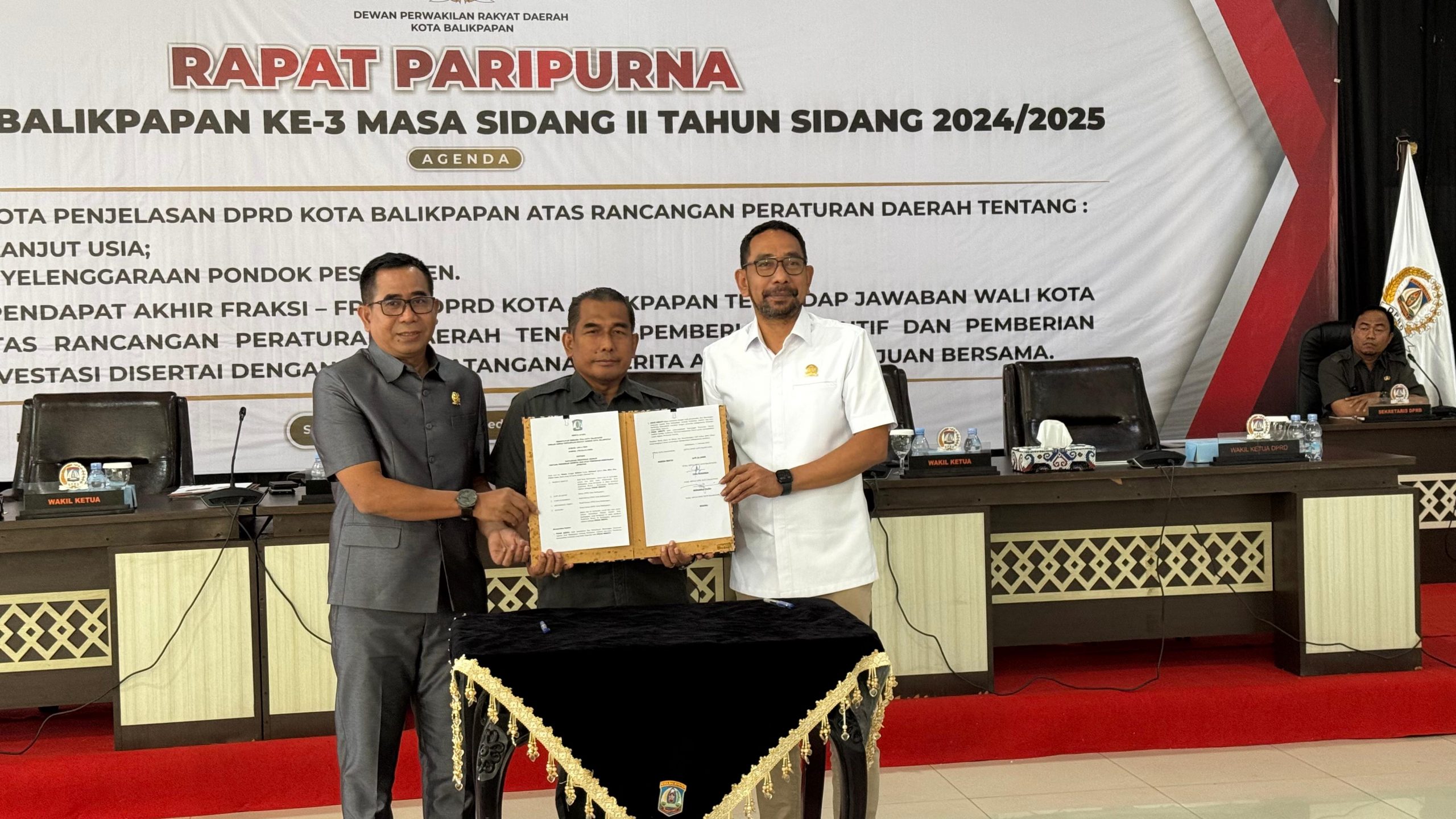 Sultanews.com, BALIKPAPAN – DPRD Kota Balikpapan secara resmi menyetujui Peraturan Daerah (Perda) tentang Pemberian Insentif dan Kemudahan Investasi, setelah enam fraksi menyatakan persetujuan dalam Rapat Paripurna ke-3 Masa Sidang II Tahun 2024/2025, yang digelar di Gedung Parkir Klandasan, Selasa (11/2/2025).