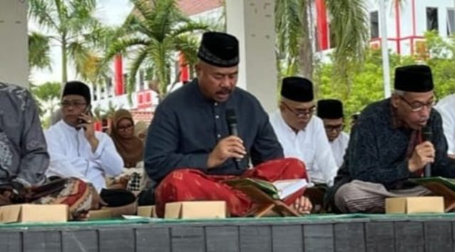 Sultanews.com, Bupati Kutai Kartanegara (Kukar) Edi Damansyah bersama Forum Koordinasi Pimpinan Daerah (FKPD), Sekda Sunggono, Ketua MUI KH. Abdul Hanan, Ketua FKUB Al Hafidz Hanururrasyid serta para pejabat dilingkup Pemkab Kukar, membaca kitab Suci Al Quran bersama-sama sebagai tanda dibukanya kegiatan Gerakan Etam Mengaji (Gema), di Lapangan Upacara Kantor Bupati Kukar, Tenggarong, Senin (17/3/2025) sore.